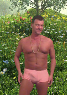 See what I mean? In the ad you could not tell there was no front at all to this suit. even if I shaved completely it looks horrible. And the back of the suit is fine and here is a picture of it.